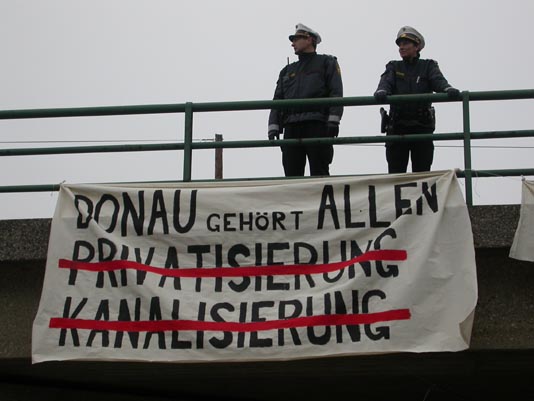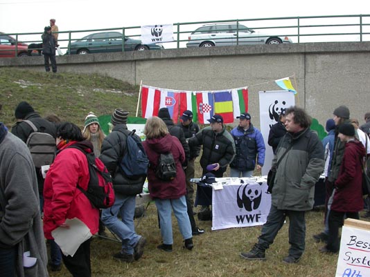 Stand des WWF mit den Wimpeln der Donauanrainerstaaten... |